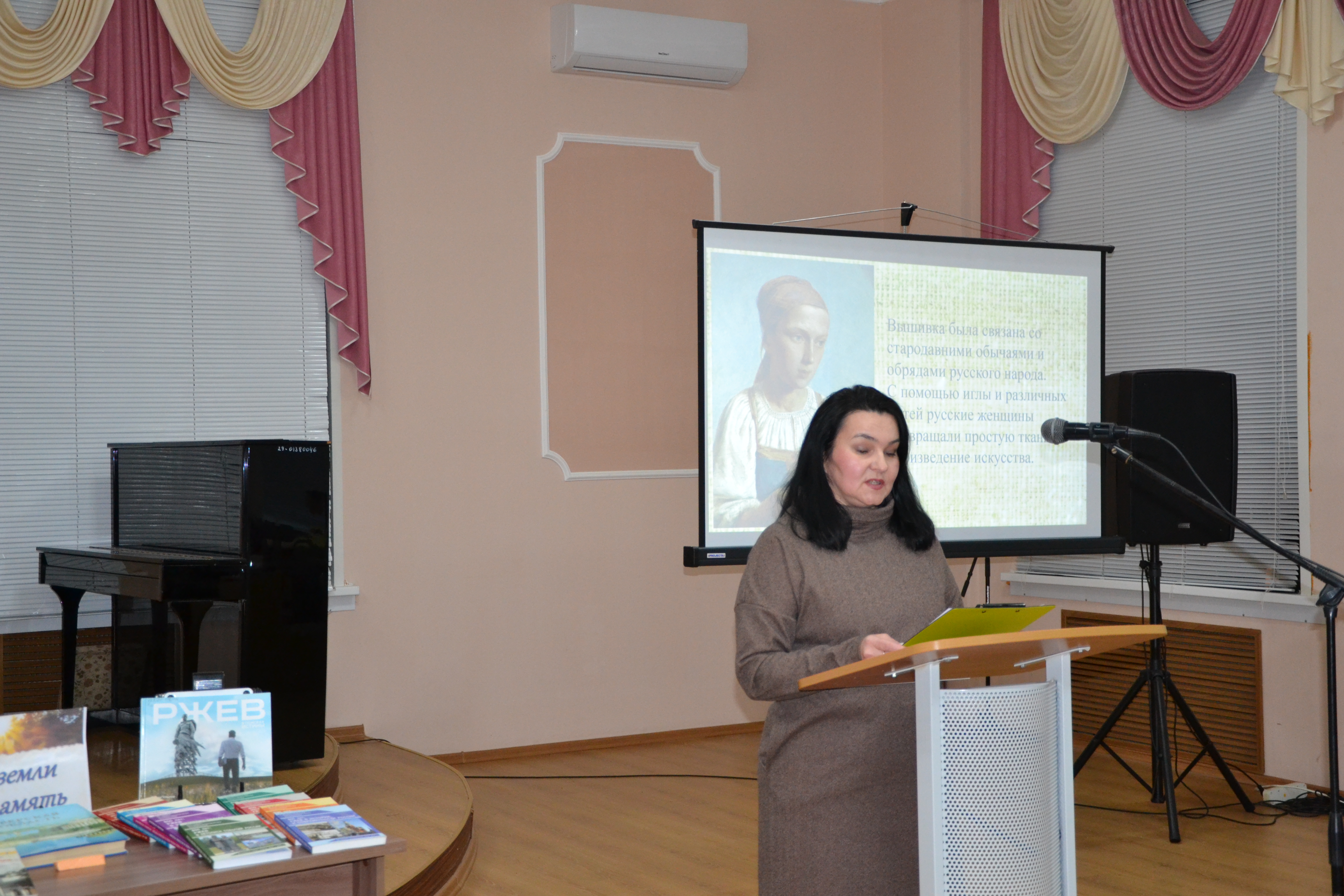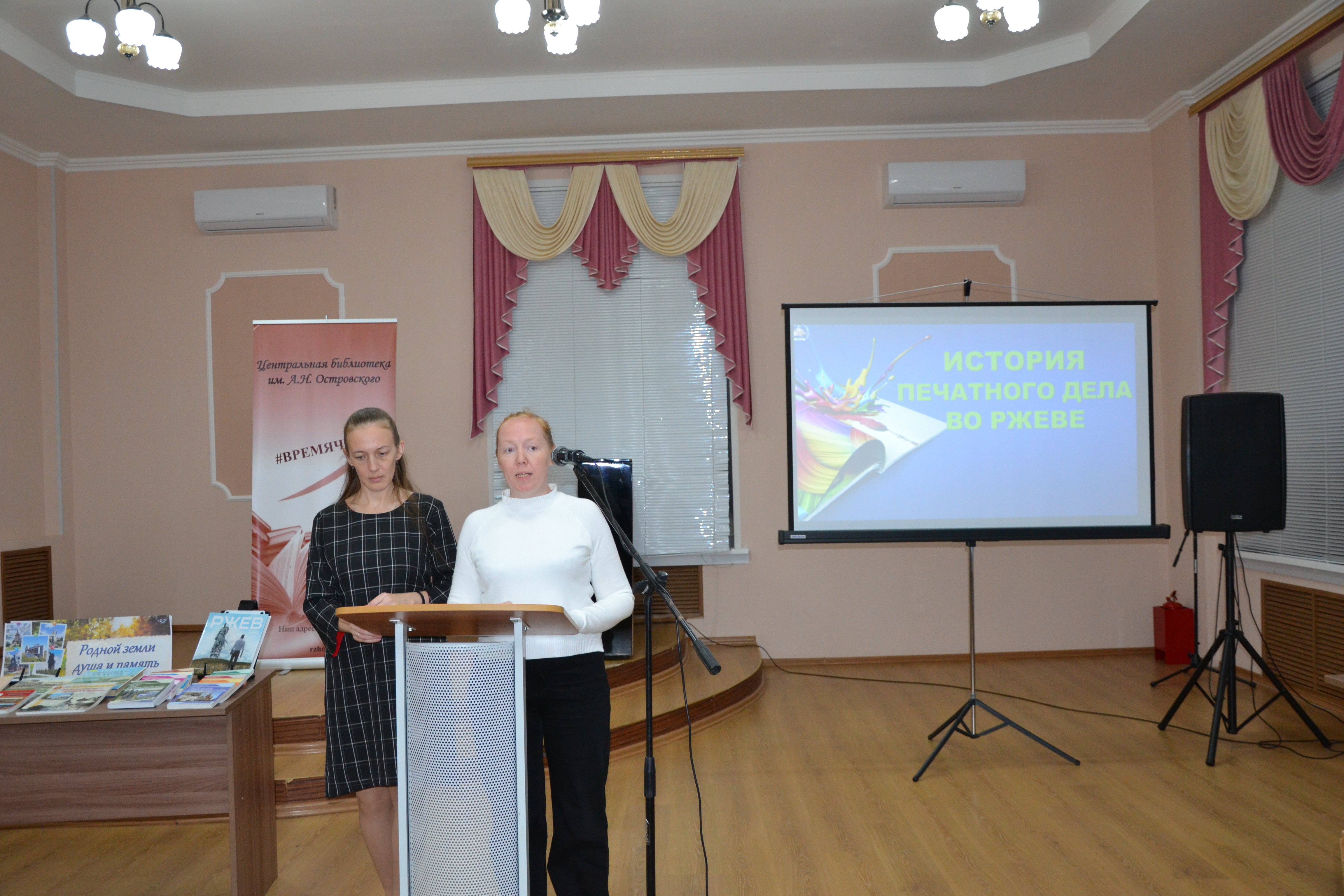 Сотрудники центральной библиотеки им. А.Н. Островского поделились своими исследованиями, представив доклады об истории книгопечатания в городе и о ржевской вышивке.